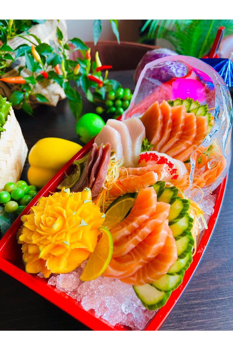 (SK,F,B,SO,SE) 22 ass. skiver sashimi m/sushiris og ponzusaus