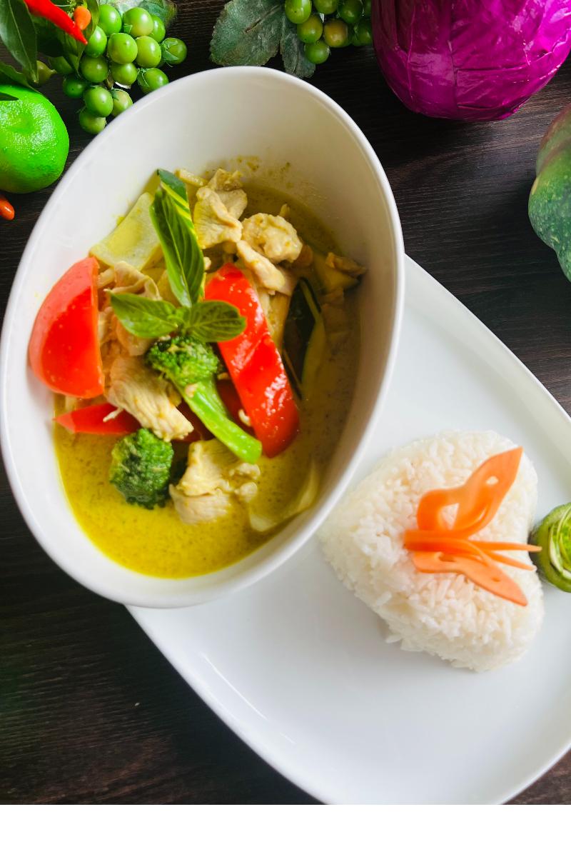 Kylling i grønn curry pest m/kokosmelk og grønnsaker