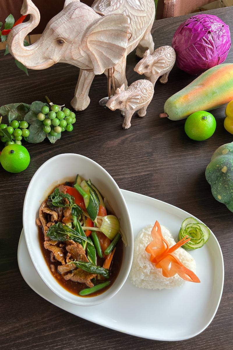 (SK,F,SO) Velg mellom scampi eller biff woked m/grønnsaker og basilikumsblad