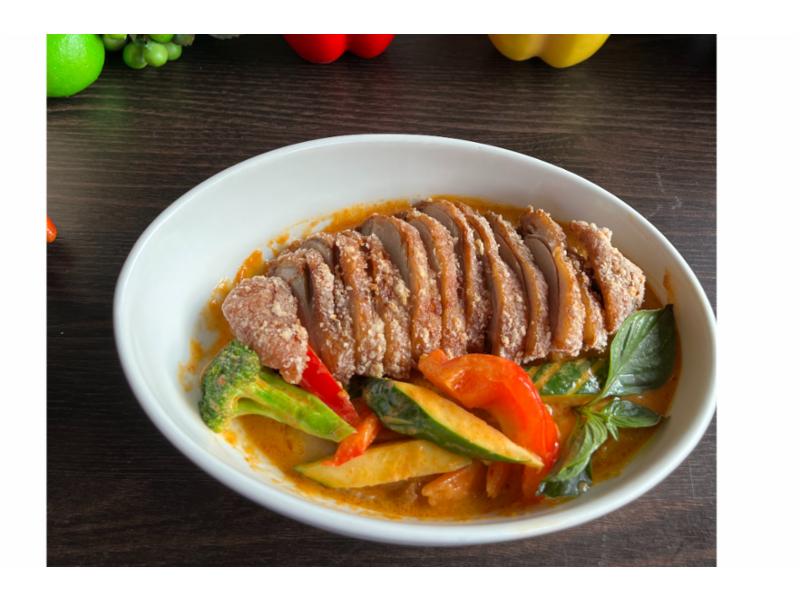 (H,SK,F,SO,SE) Stekt and i rød currypesto m/kokosmelk og grønnsaker